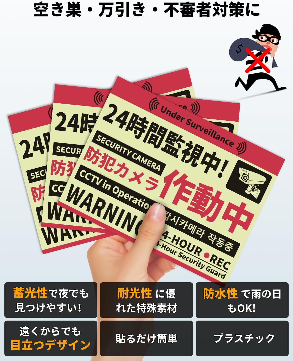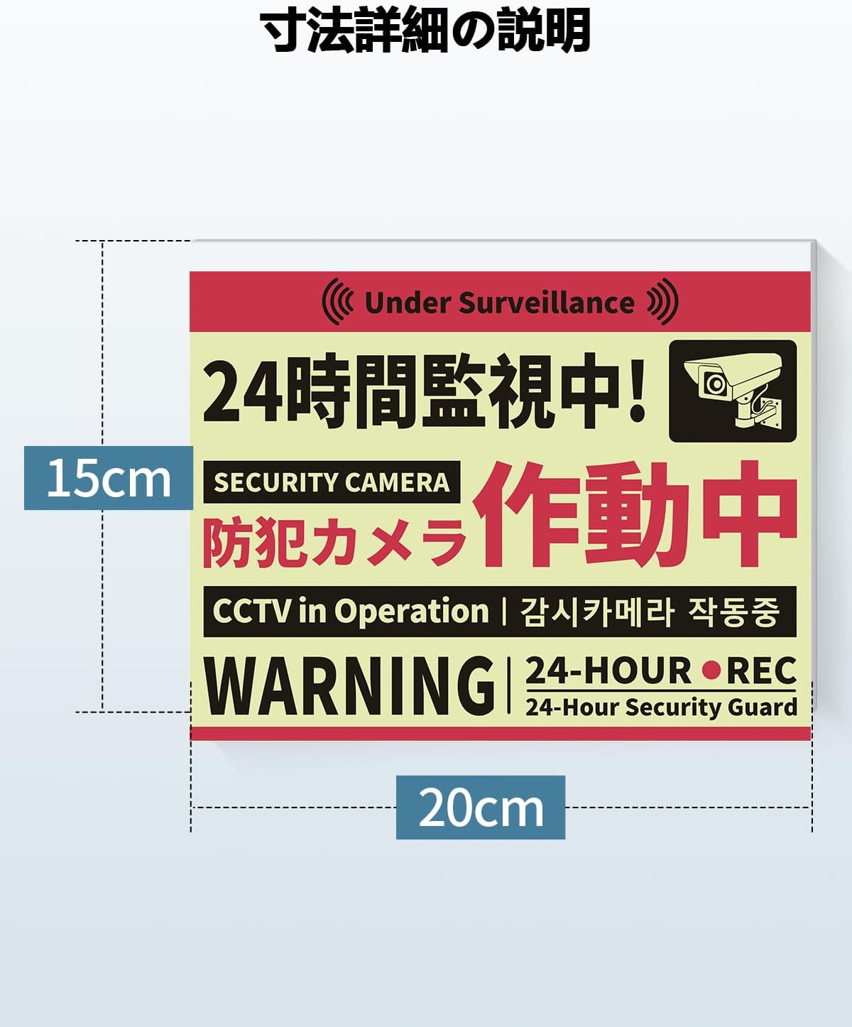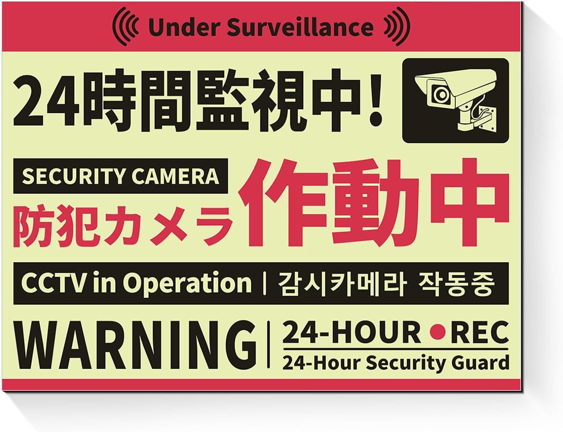 - ✅{多言語対応}「24時間監視中」と書かれているので、アジア人だけではなく、訪日外国人にも簡単に読めます。防犯カメラと一緒に利用すると更に防犯効果が抜群。