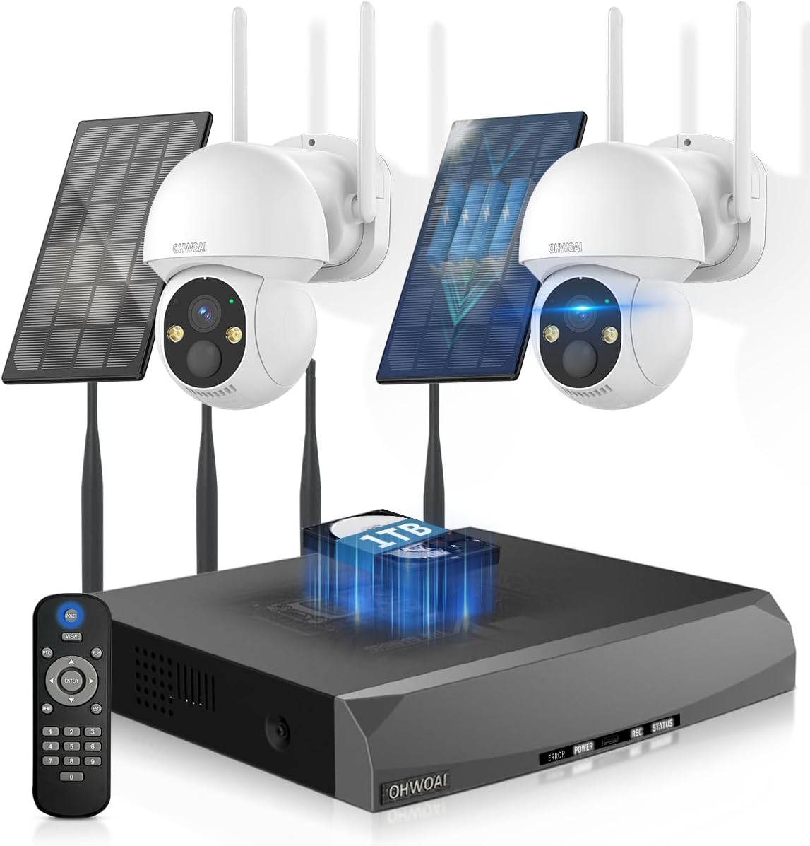【ソーラー給電 & 双方向通話】 OHWOAI 防犯カメラ ワイヤレス 屋外 防犯カメラセット 2台 無線 監視 夜間カラー 家庭用 屋外 wi-fiなし セキュリティカメラ 400万画素 ソーラー ランキング 2台セット 10ch 適格請求書発行可