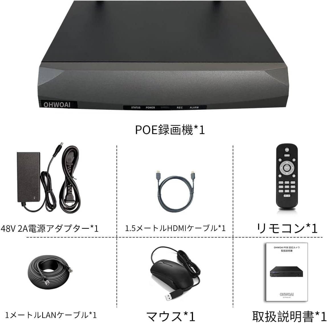 OHWOAI POEレコーダー POE給電録画機 4K 800万画素 OHWOAI POE防犯カメラ対応