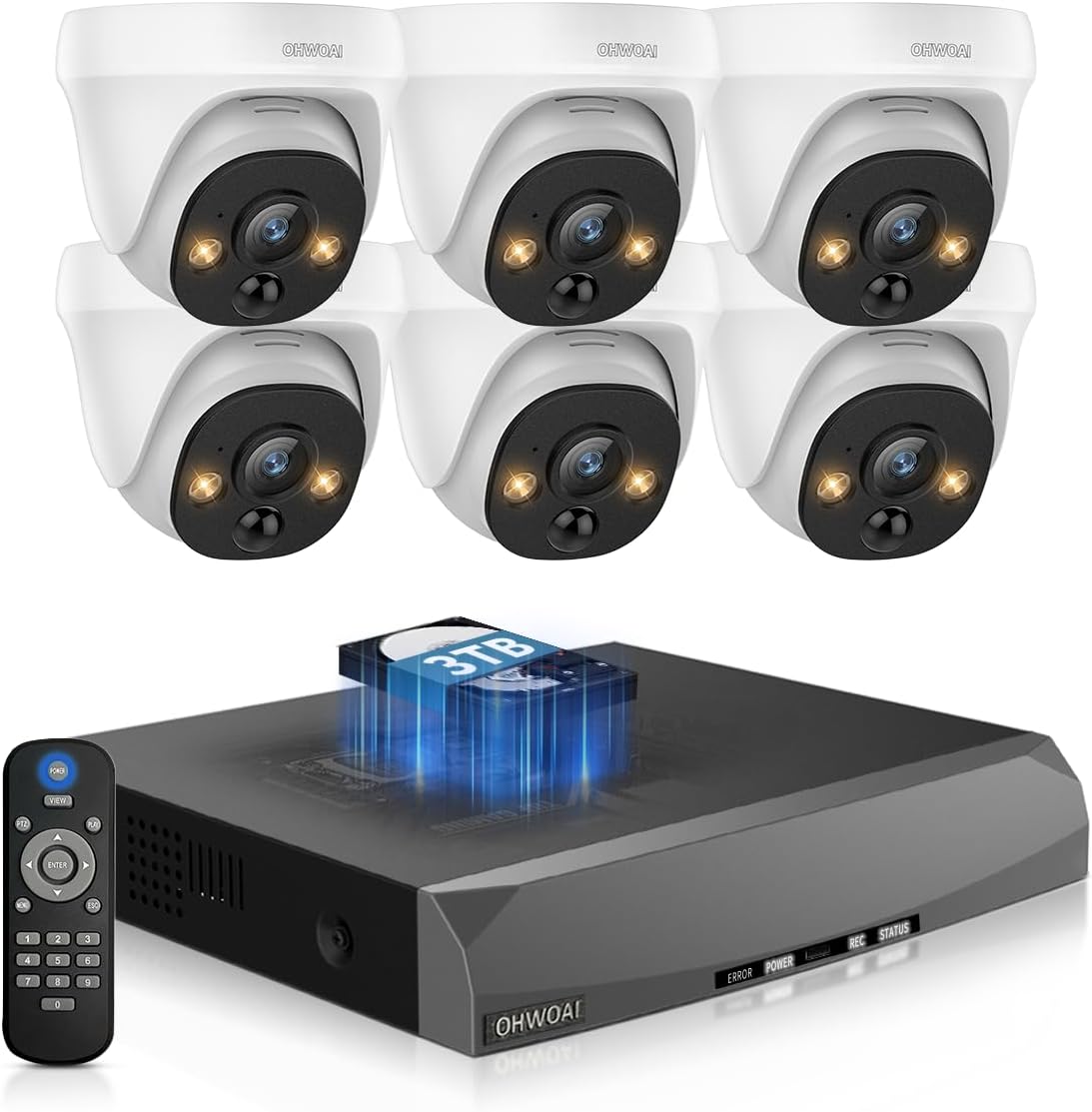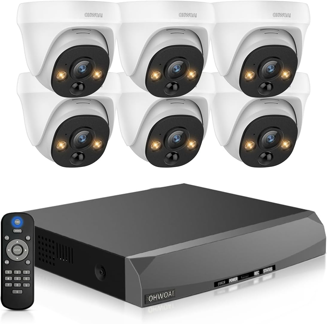 【130°広角・双方向通話】 OHWOAI POE防犯カメラセット 4K 800万画素 監視カメラ 屋内対応 ドーム型 夜間カラー撮影 家庭用 セキュリティカメラシステム POE給電 適格請求書発行可 (ドーム型6台セット)